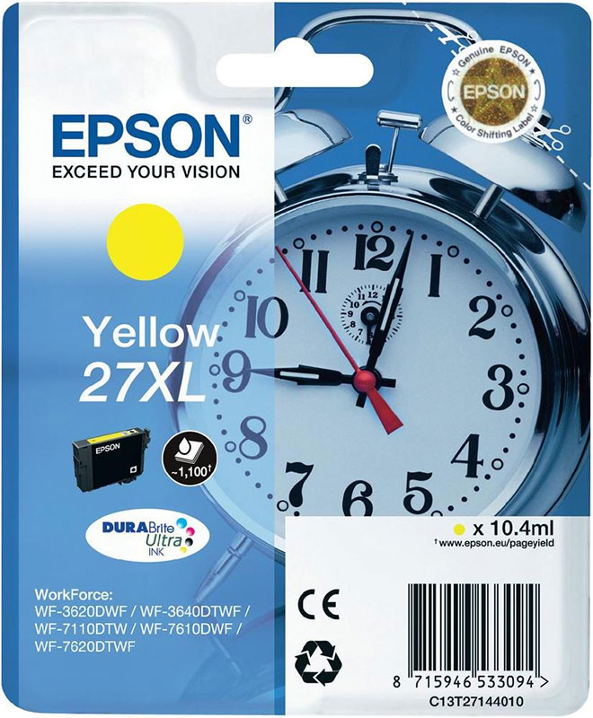 Tuotenumero: Epson 27XL (Alarm Clock/Herätyskello), T2714, C13T27144010, C13T27144012.