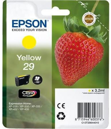 Alkuperäiset muste- ja värikasetit, kuten Epson 29 (T2984) Keltainen, ovat laitevalmistajan itsensä kehittämiä ja testaamia juuri tälle tulostinmallille. Valitsemalla alkuperäisen kasetin, varmistat tasalaatuisen tulostusjäljen ja vältät ikävät yhteensopivuusongelmat koko kasetin käyttöiän ajan.