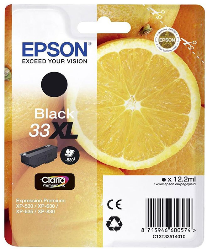 Alkuperäiset muste- ja värikasetit, kuten Epson 33XL (T3351) Musta, ovat laitevalmistajan itsensä kehittämiä ja testaamia juuri tälle tulostinmallille. Valitsemalla alkuperäisen kasetin, varmistat tasalaatuisen tulostusjäljen ja vältät ikävät yhteensopivuusongelmat koko kasetin käyttöiän ajan.