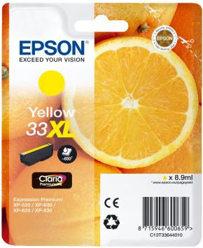 Epsonin alkuperäismustekasetit ovat optimoitu toimimaan täydellisesti Epsonin tulostimien kanssa, mikä takaa luotettavan suorituskyvyn ja vähentää tulostusongelmien riskiä. Epson 33XL keltainen mustekasetti varmistaa, että tulosteesi ovat aina tarkkoja, värikylläisiä ja laadukkaita.