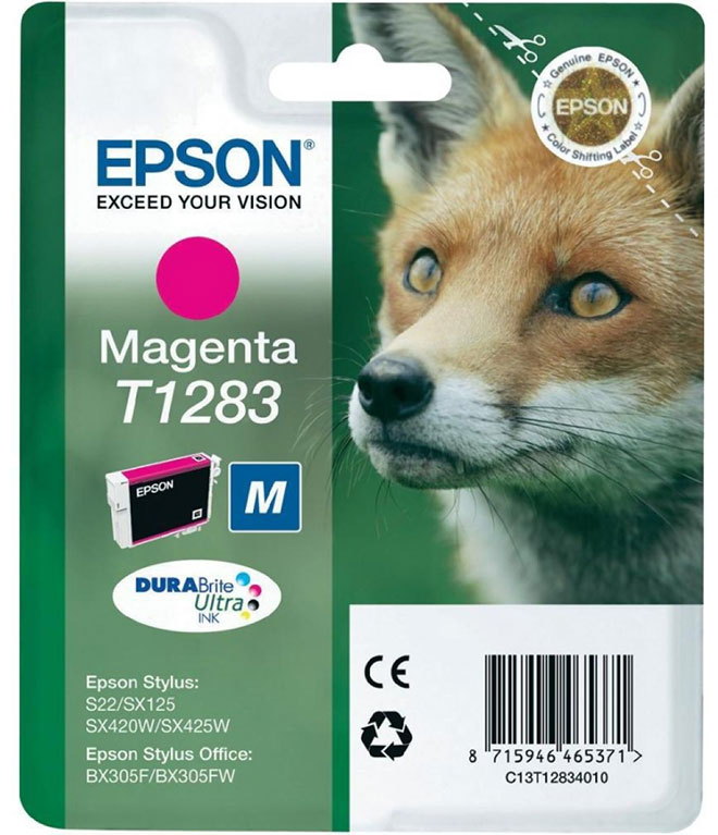 Tuotenumero: Epson T1283 (Fox/Kettu), T128340, C13T12834010, C13T12834011, C13T12834012, 8715946627748 (EAN).