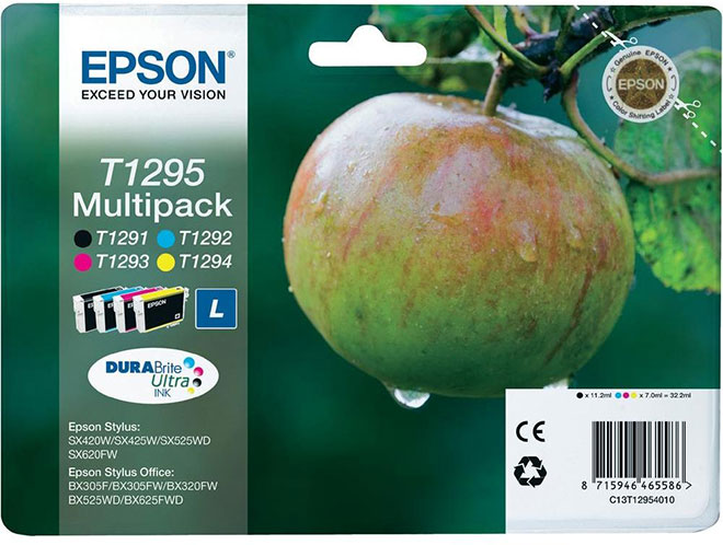 Tuotenumero: Epson T1295 (Apple/Omena), C13T12954010, C13T12954012.