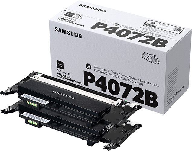 Samsung CLT-P4072B on kahden alkuperäisen mustan värikasetin tuplapakkaus, joka on suunniteltu Samsungin CLP-320-, CLP-325- ja CLX-3185-sarjan värilasertulostimille. Jokainen kasetti riittää noin 1 500 sivun tulostamiseen 5 % peittoasteella, joten pakkaus tarjoaa yhteensä noin 3 000 sivun tulostuskapasiteetin. Tämä tekee tuplapakkauksesta erinomaisen valinnan käyttäjille, jotka tulostavat säännöllisesti suuria määriä asiakirjoja ja haluavat vähentää kasettien vaihtotiheyttä.